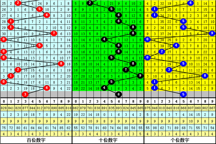 百位分析:该位最近10期开出了5个0路号码、2个1路号码、3个2路号码,0路号码热出,1路号码走冷。本期遗弃2路号码,参考号码:3。