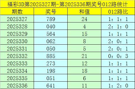 福彩3D第2025337期012路分析