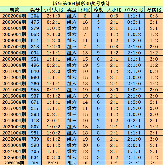 在积年同时开奖中,组三出现6次,组六开出18次,客岁同时开出组六,本年同时看好组六再出。